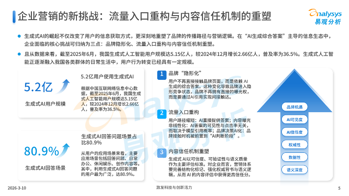 此次入选是对深度云海在GEO领域实践成果的认可。根据易观分析报告,2026年是中国GEO产业从“探索期”迈向“市场启动期”的关键分水岭。随着豆包、千问、元宝等AI平台加速渗透信息分发全链路,GEO市场规模预计将在今年实现从2.5亿元到30亿元的爆发式增长。在此背景下,行业正经历剧烈分化。易观分析指出,过去依赖信息污染、算法漏洞的灰色增长模式已终结,市场准入门槛大幅提高。GEO行业正从“野蛮生长”转向由合规、透明、标准化主导的“强规范时代”。深度云海以技术破局、以透明立信,为各类型企业开辟AI时代的获客新航道,成为这一变革浪潮中的破局者与领航者。